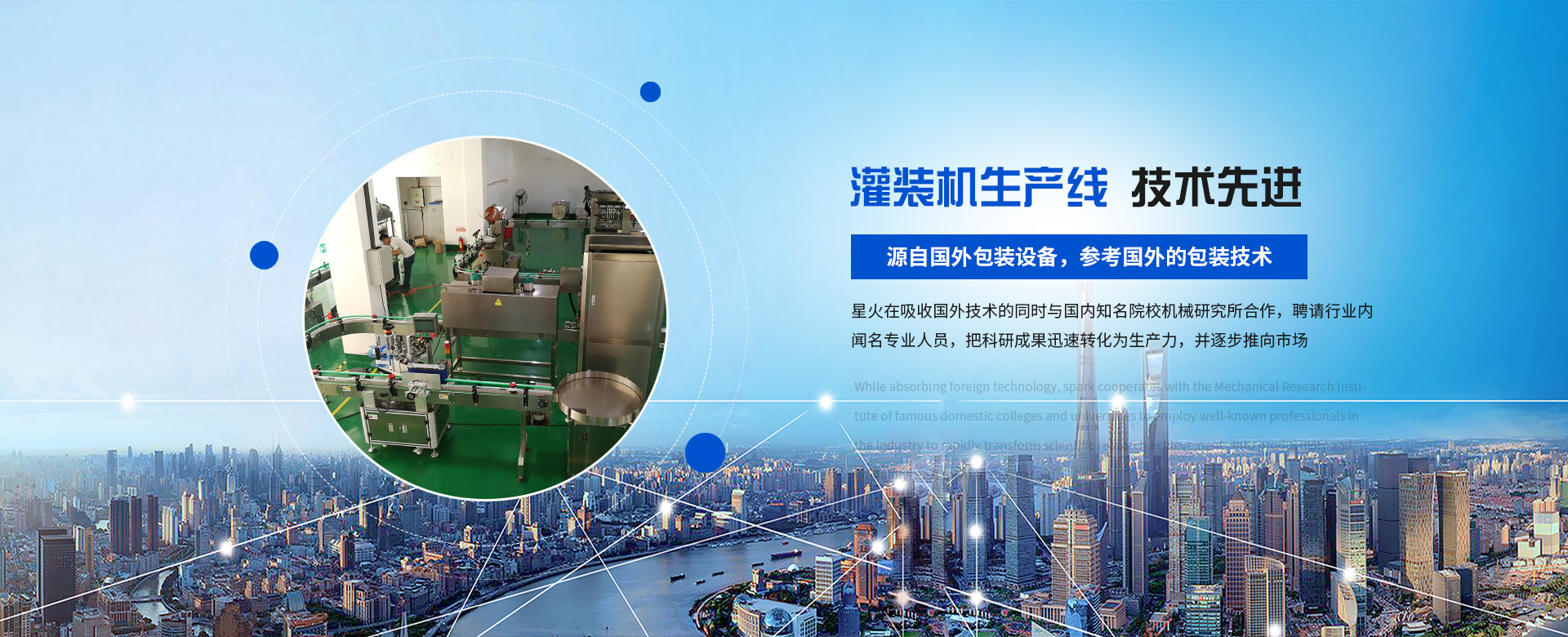 源自國外包裝設備,參考國外的包裝技術,與國內(nèi)知名院校機械研究所合作。灌裝機等設備已擁有十多項產(chǎn)品知識產(chǎn)權和專利技術